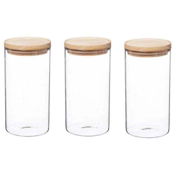 5five Set Of 3 Air Seal Round Glass Storage Jars