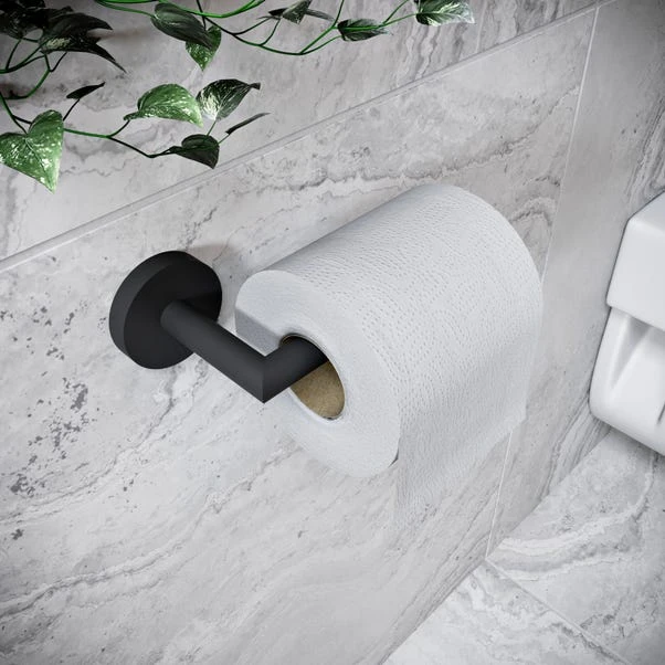 Make sure you have your toilet paper next to you and easy to roll off with this toilet roll holder. It is made from durable zinc alloy in a sleek matt black finish. Installation is easy with the Flexi-Fit accessories, you simply screw or glue. All fixings are included for installation.
