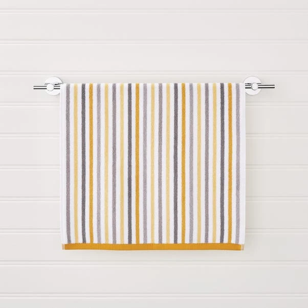 Showing off ochre stripes, this lovely towel coordinates perfectly with our other Ashbourne bathroom accessories. It has been crafted from 100% cotton with a 550gsm weight quality for a super soft, luxurious finish.