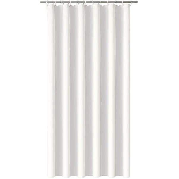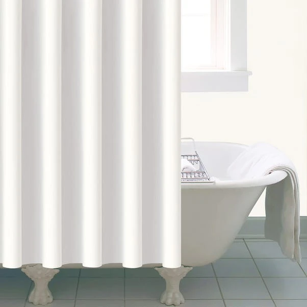 Made from durable material, this lightweight white shower curtain requires no lining and will keep your bathroom protected from water damage.