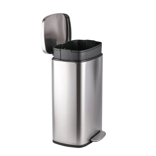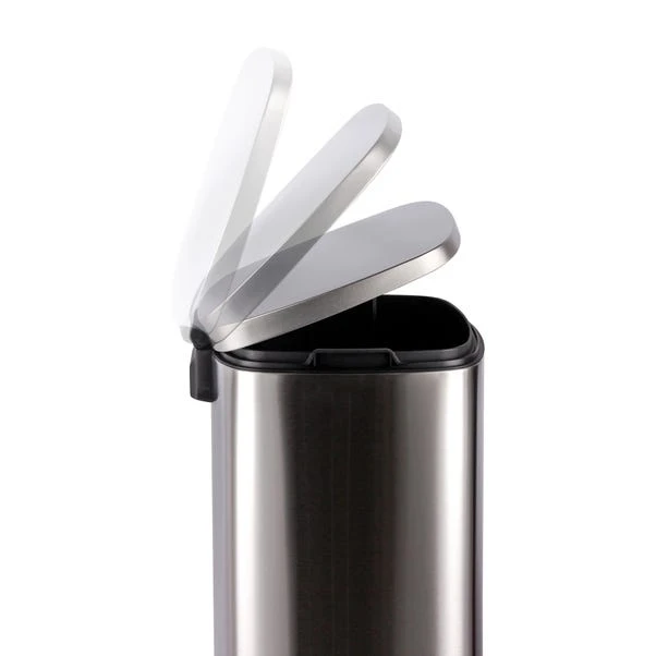 Perfect for holding all of your kitchen waste, this sophisticated and stylish stainless steel bin boasts a generous 50L capacity making it the perfect addition to all busy, larger family households. Featuring a smudge resistant finish this bin is easy to clean with the removable inner bucket making emptying the bin and changing bin liners quick and easy every time. The stay open lid is great for cleaning and emptying while the practical tuck and hold bag retention function prevents the liners from falling into the bin during use. Suitable to compliment all types of kitchen decor, this modern and stylish stainless steel bin boasts a gentle and silent lid closure for convenient silent closing and the durable, ergonomic pedal requires minimal pressure to open, making this bin perfect for use with all family members.