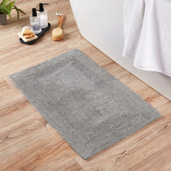 Crafted from super soft 100% cotton for a sumptuous feel as you step out of the bath, this reversible bath mat comes in a shade of silver and is machine washable for easy care and convenience.
