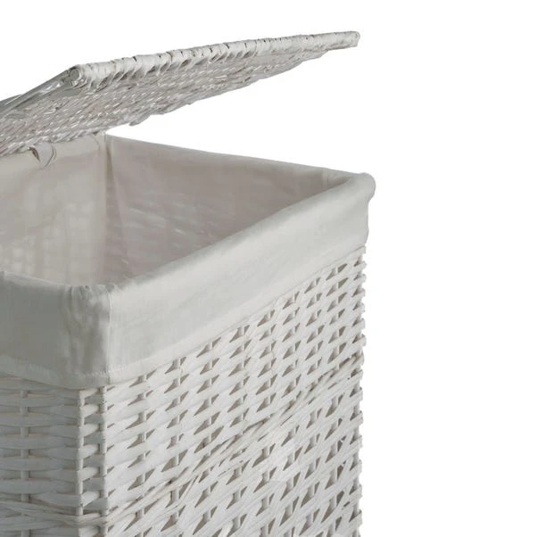 Made from hard-wearing woven willow, this basket features a hinged lid for easy access to it’s contents. Providing a neat and tidy storage solution and featuring a removable inner liner for easy cleaning. This laundry basket is available in a range of sizes and is also available in a grey colourway.