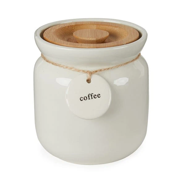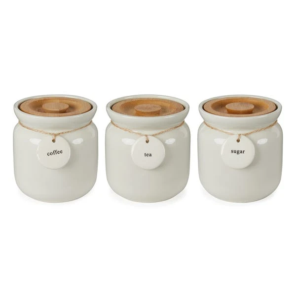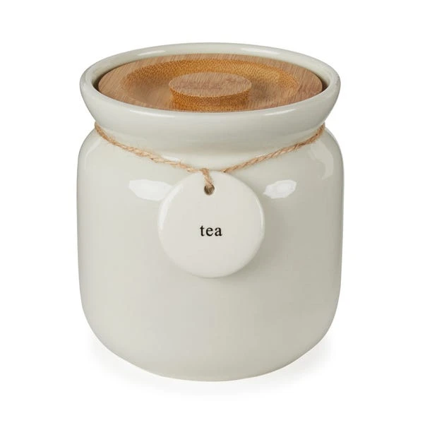 Made from stoneware, these canisters are supplied with a lid and a hang tag is finished in a cream colour. Please note, canisters must be brought separately.
