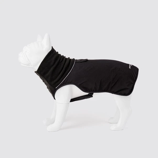 When the weather turns cold, make sure your pooch stays nice and toasty with this Hugo & Hudson black thermal dog coat. The soft-shell exterior combined with the stretchy neck fleece makes sure this jacket will keep your dog warm when out on their daily walk. A lead hole allows you to attach your lead to your dog’s collar with ease so the neck fleece can remain covering their neck. With an adjustable chest and elastic leg straps, this thermal dog coat is easy to put on and for the dog to wear.