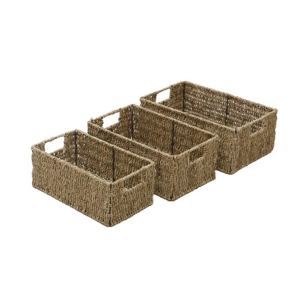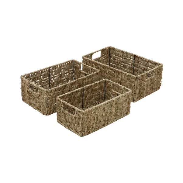 JVL Seagrass Set Of 3 Storage Baskets With Handles